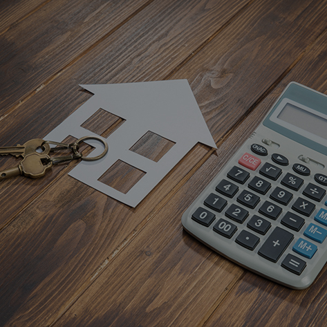 Image of a house and keys sit next to a calculator.