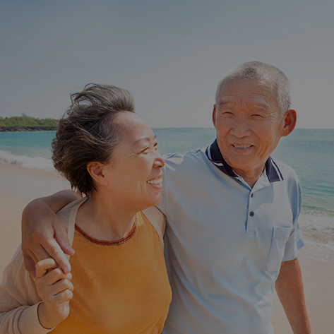 Man and woman walking along a beach.
